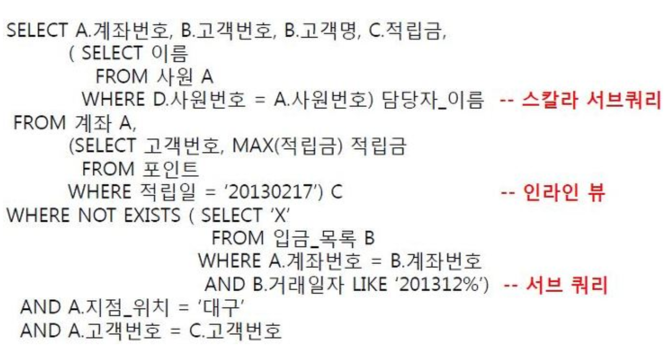 ㅇ 서브쿼리의 위치에 따른 명칭