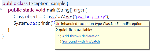 에러 유형은 java.lang.ClassNotFoundExcepotion : java.lang.limky를 상단에 찍어줌으로써 limky라는 클래스를 찾을 수 없어서 발생한 일반 예외임을 알린다.