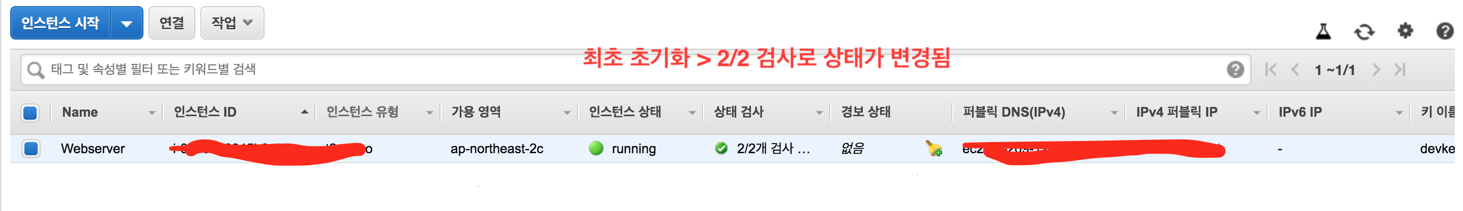 처음시작하면 위의 항목중에 [상태 검사]가 초기화로 표시되고 기다리면 2/2 검사로 바뀐다. 그러면 EC2 인스턴스 생성이 완료 된 것 이다.