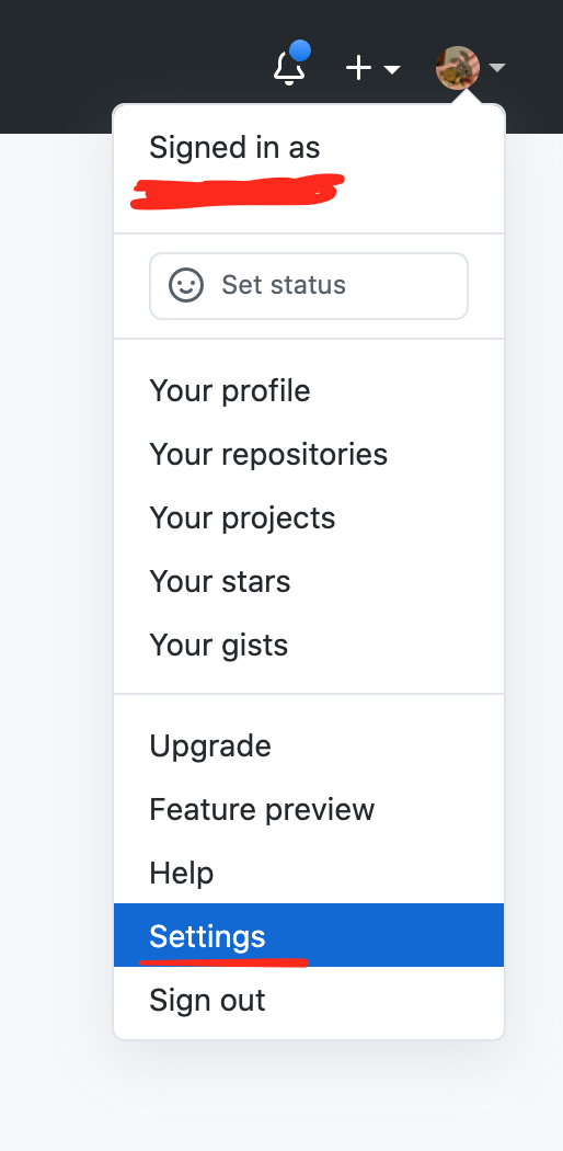 깃허브 로그인 > 우측 프로필 클릭 > Settings 클릭