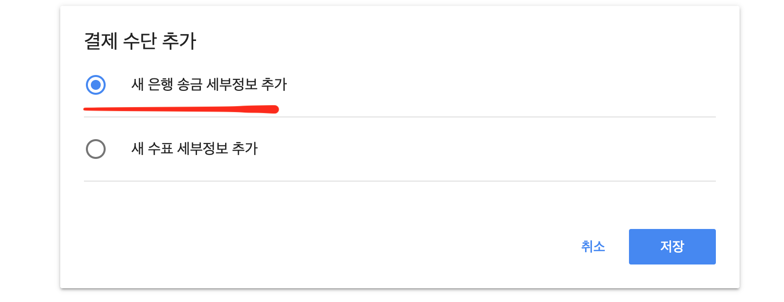 애드센스 로그인 > 지급 > 지급받을 방법 > 결제수단추가 버튼 클릭