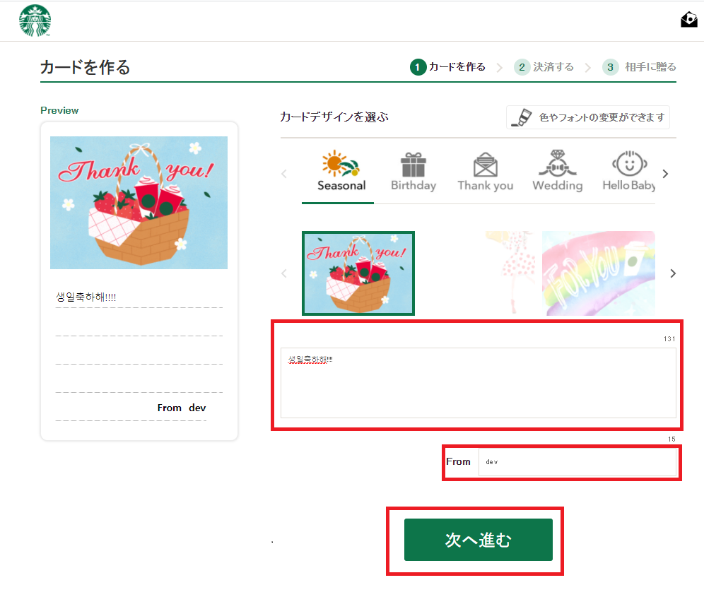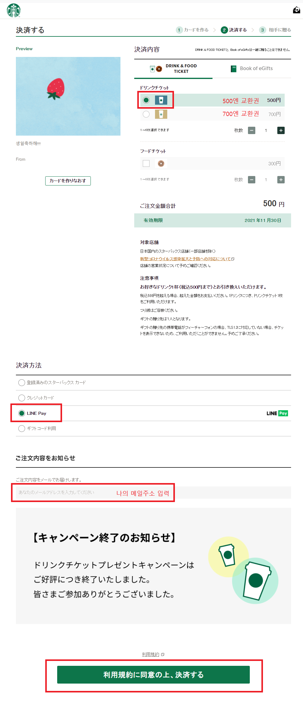 결제는 일본 스타벅스 사이트에서 가능하다.