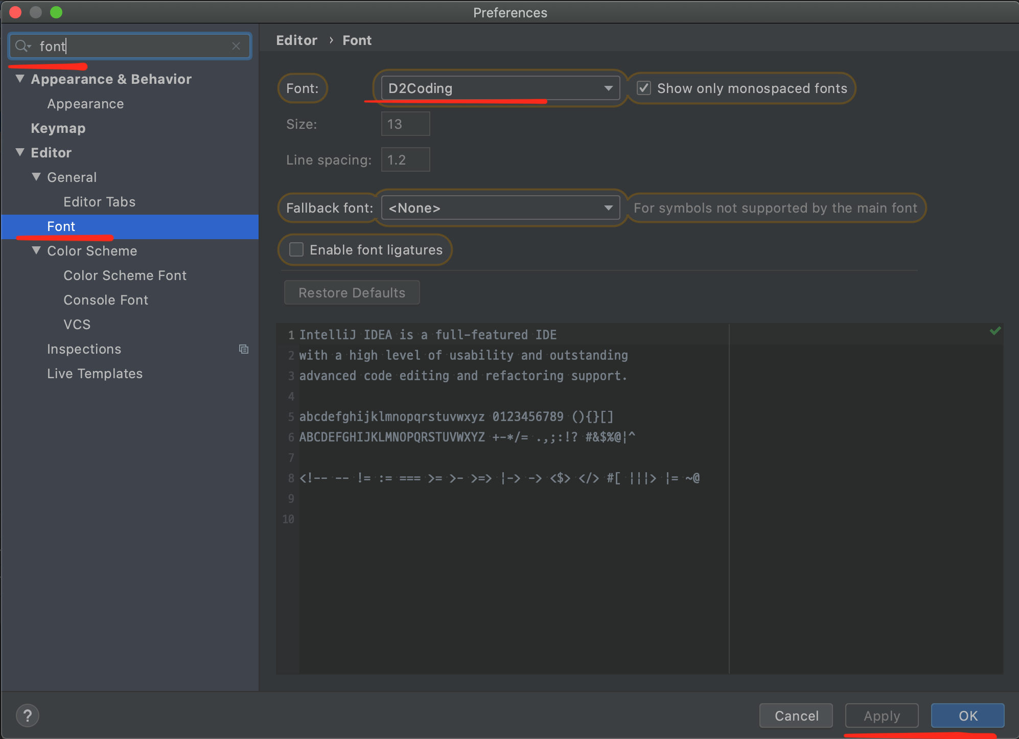 [IntelliJ] Mac OS 인텔리제이 글꼴,폰트 Font변경하기!IntelliJ 인텔리제이 2021. 10. 31. 16:35반응형