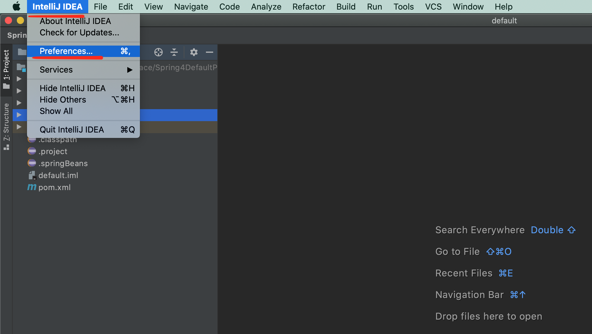 IntelliJ IDEA 메뉴 선택 > Preferences > 선택