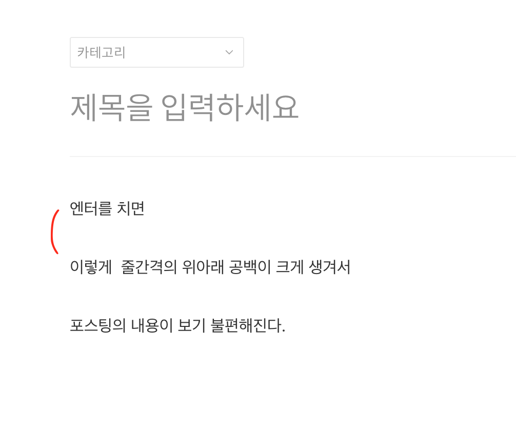티스토리에서 포스팅할때 엔터시 줄간격이 너무 넓어서서 보기 불편했다.