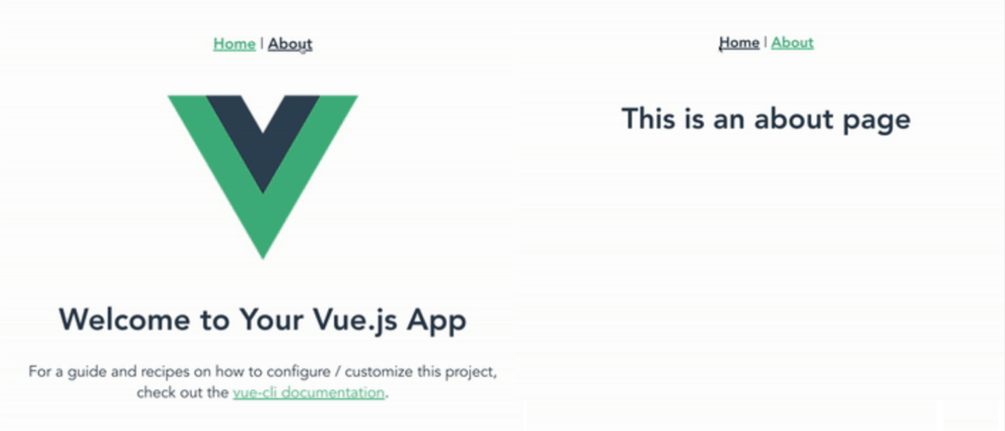 <template> <div id="app"> <div id="nav"> <!-- 해당 페이지로 이동 --> <router-link to="/">Home</router-link> | <router-link to="/about">About</router-link> </div> <!-- 선택한 페이지 렌더링 --> <router-view/> </div> </template> <style lang="scss"> #app { font-family: Avenir, Helvetica, Arial, sans-serif; -webkit-font-smoothing: antialiased; -moz-osx-font-smoothing: grayscale; text-align: center; color: #2c3e50; } #nav { padding: 30px; a { font-weight: bold; color: #2c3e50; &.router-link-exact-active { color: #42b983; } } } </style>tamplate 태그 안에서 라우팅 역할을 해주는 기술은 <router-link>이다. 우리가 선택한 페이지에 컴포넌트를 렌더링 해주는 부분은 <router-view/>이다.