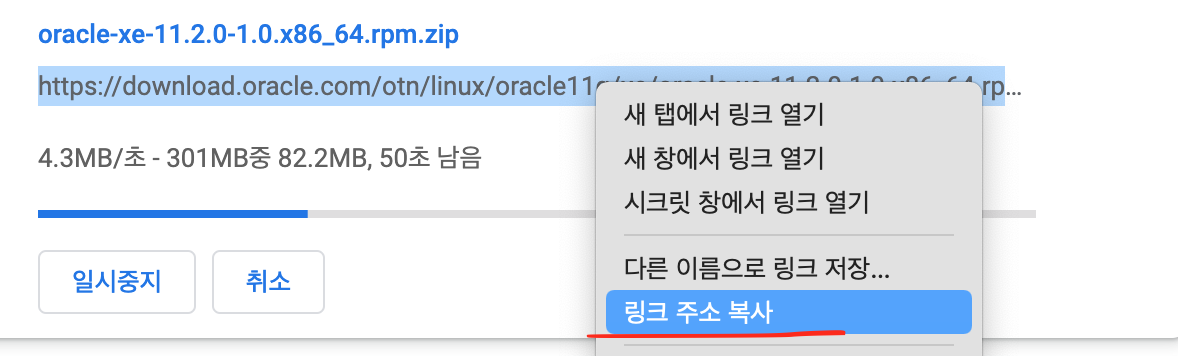 크롬 > 다운로드 탭에서 링크주소 복사 클릭