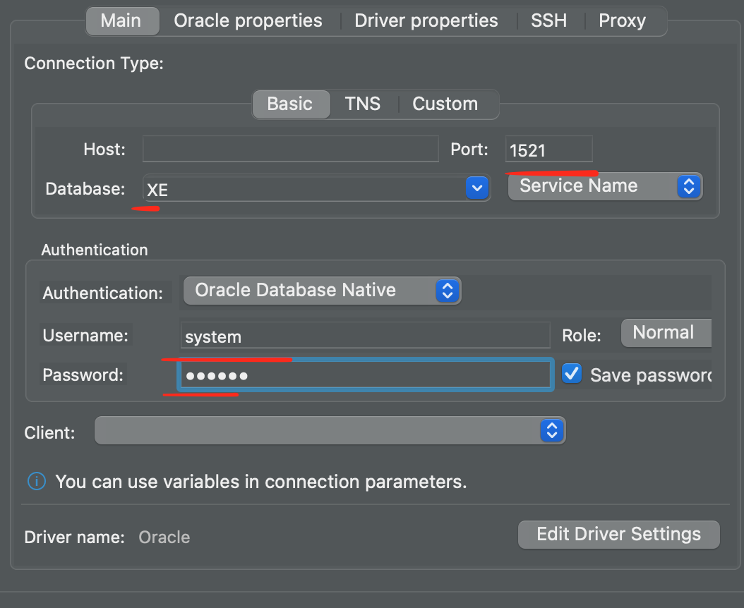 디비 툴로 접속 연결 테스트,, 최초 아이디는 system, 비밀번호는 아까 입력한 oracle