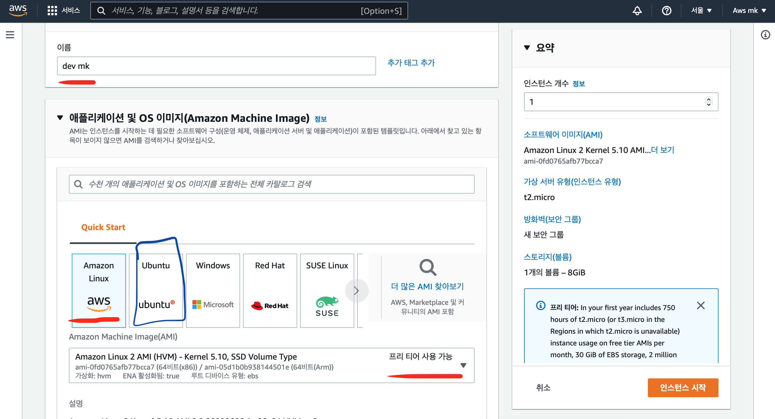※※EC2에서 오라클을 설치하고 싶으면 OS 선택시 Amazon Linux 말고 Ubuntu를 꼭 선택하길 바람!!!