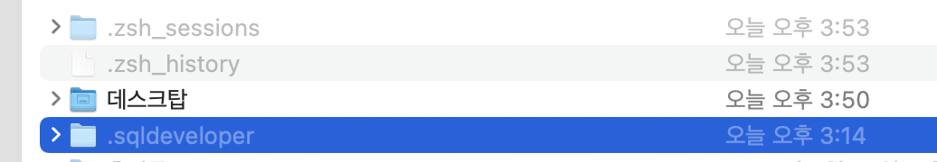 .sqldeveloper 폴더는 숨김파일이 되어 있다.