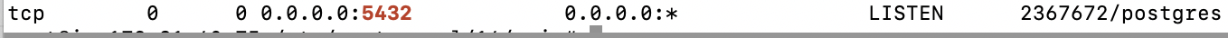 $ netstat -ntlp | grep 5432