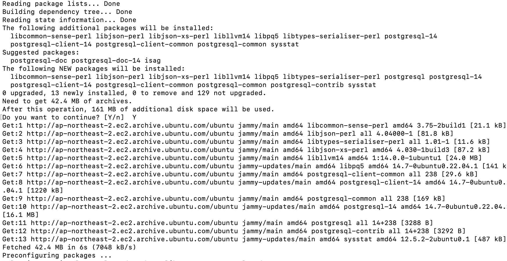 $ sudo apt-get install postgresql postgresql-contrib