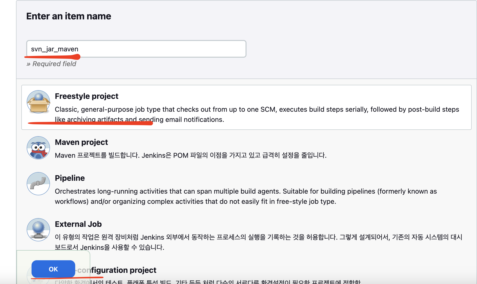 1. 아이템생성, Freestyle project 선택