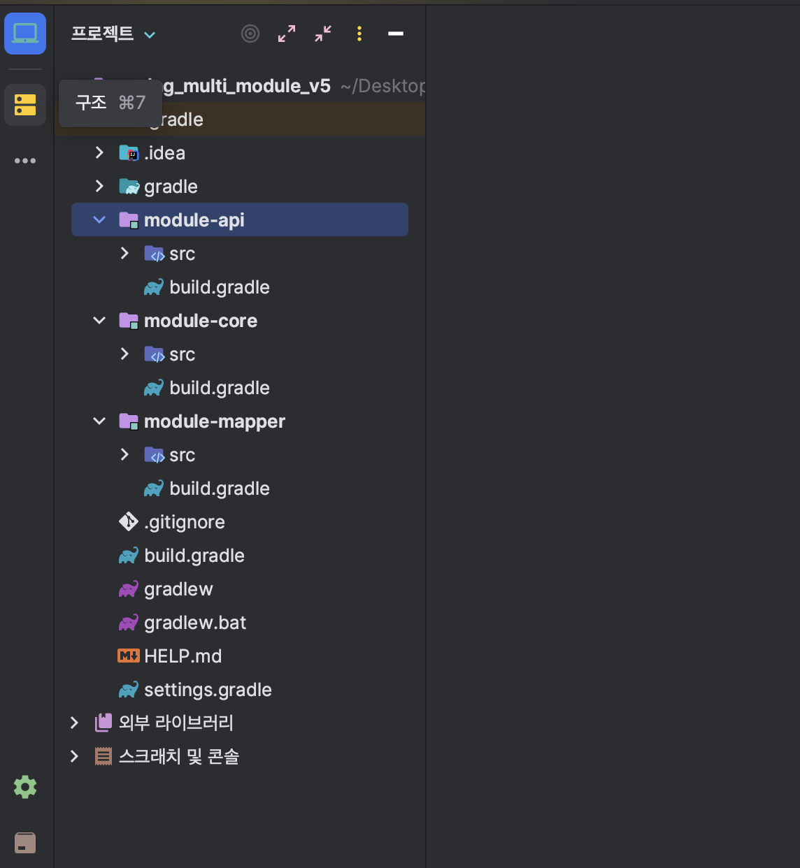 하위 모듈 프로젝트들은 src랑 build.gradle만 남았다.