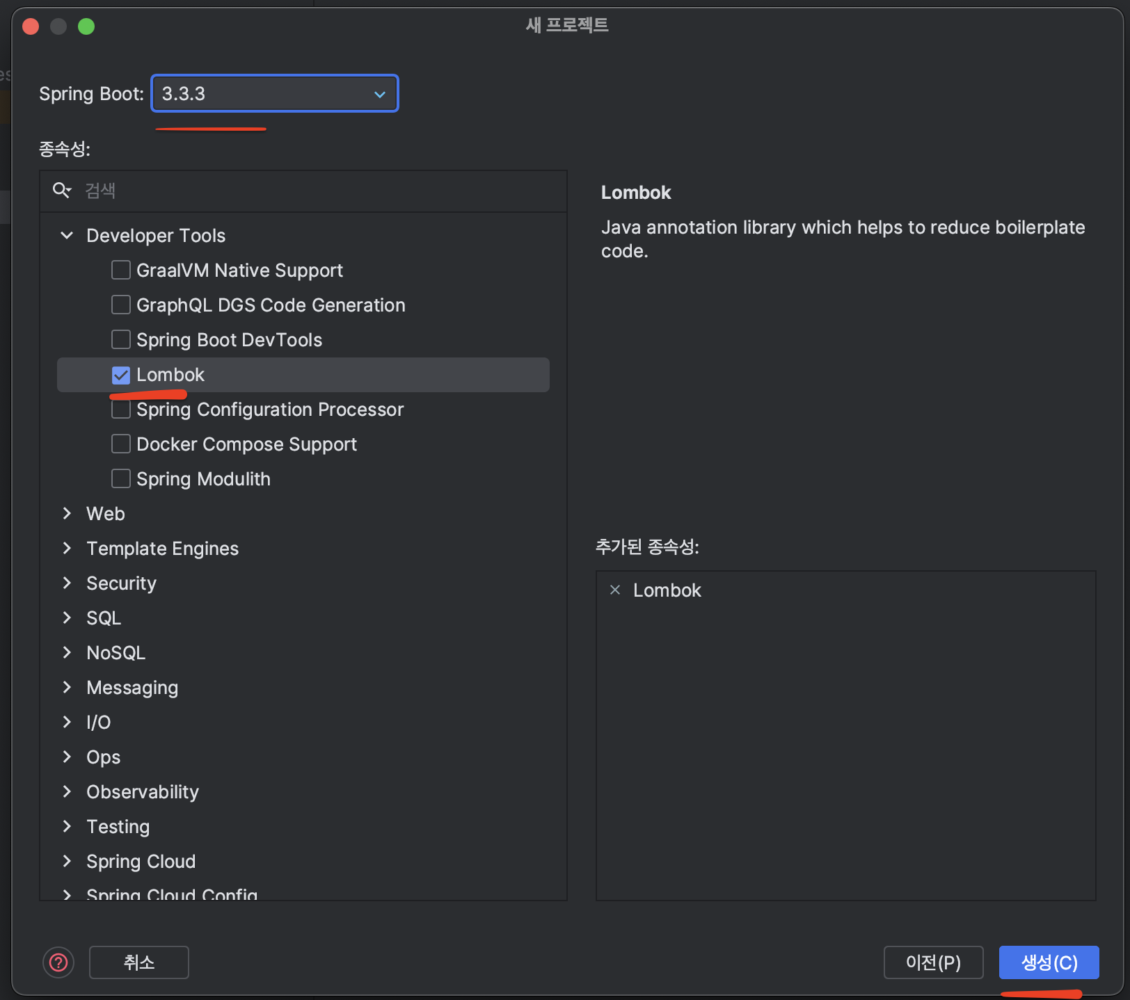 2. 공통으로 적용할 dependency를 설정한다. 테스트용으로 lombok 추가
