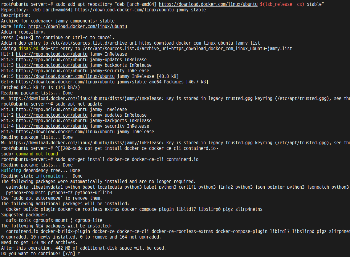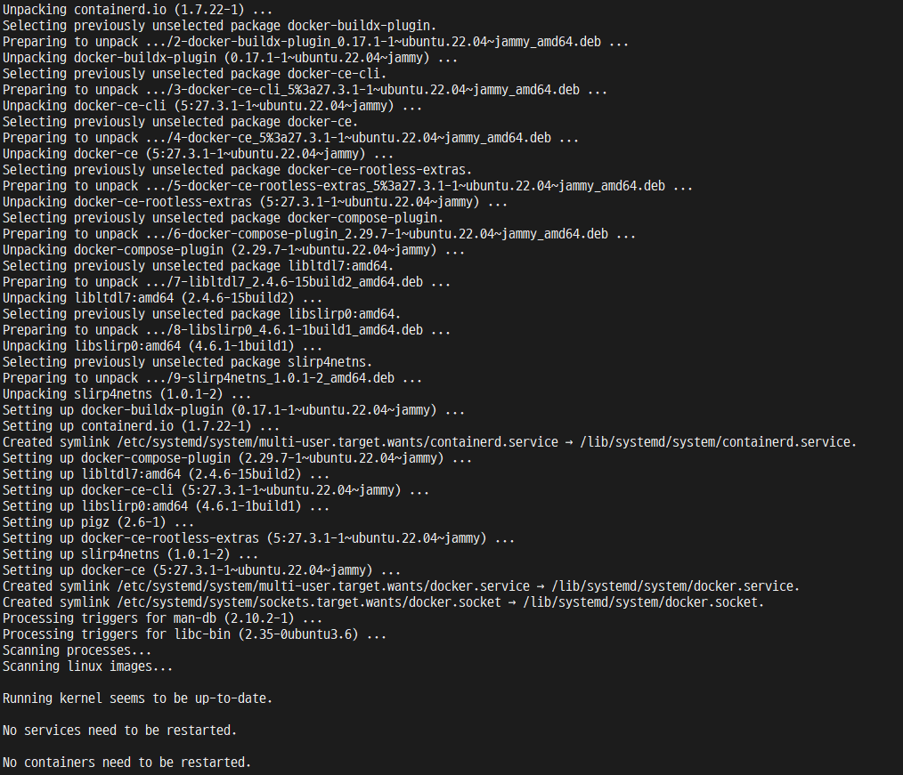 sudo apt-get install docker-ce docker-ce-cli containerd.io