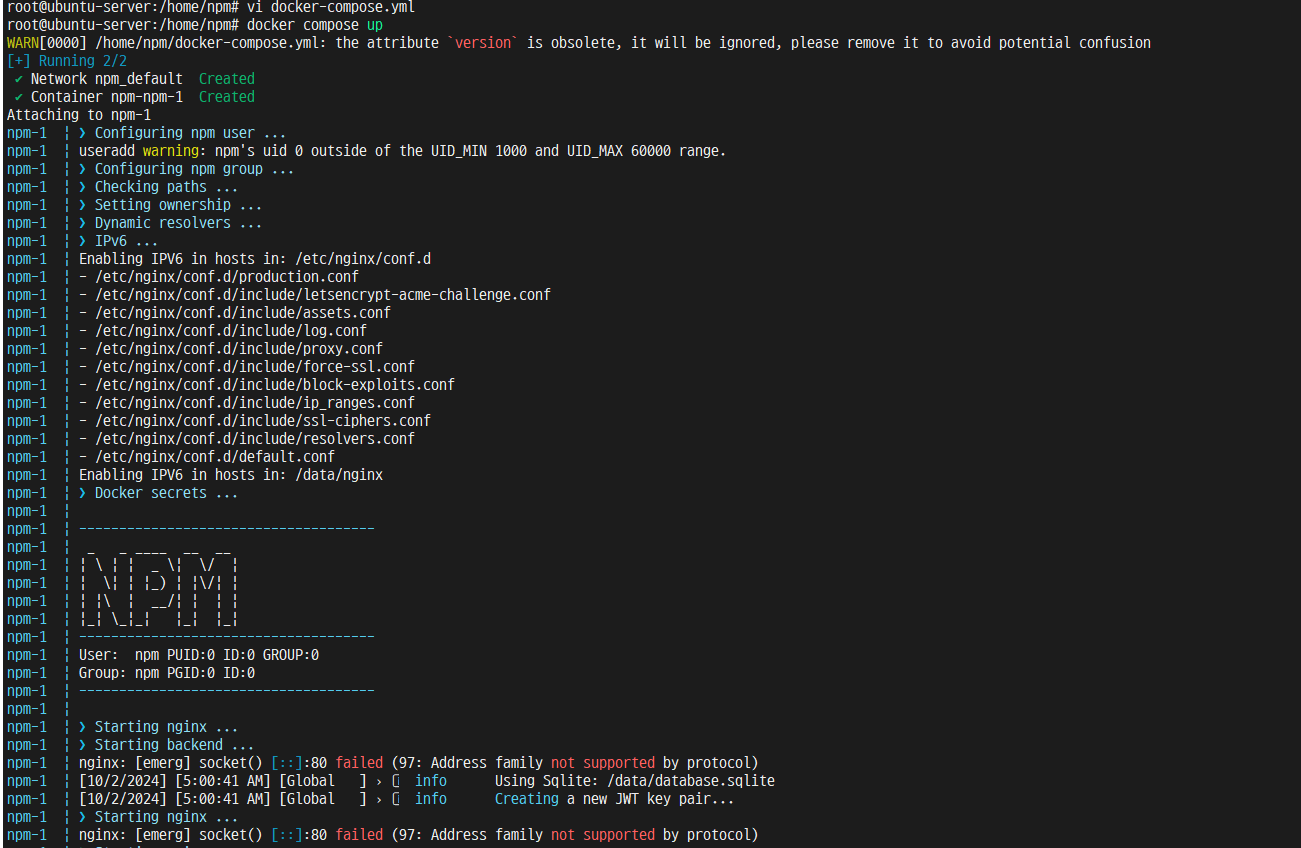 sudo apt install -y docker-compose2. 도커 컴포즈로 nginx + nginx proxy manager 설치