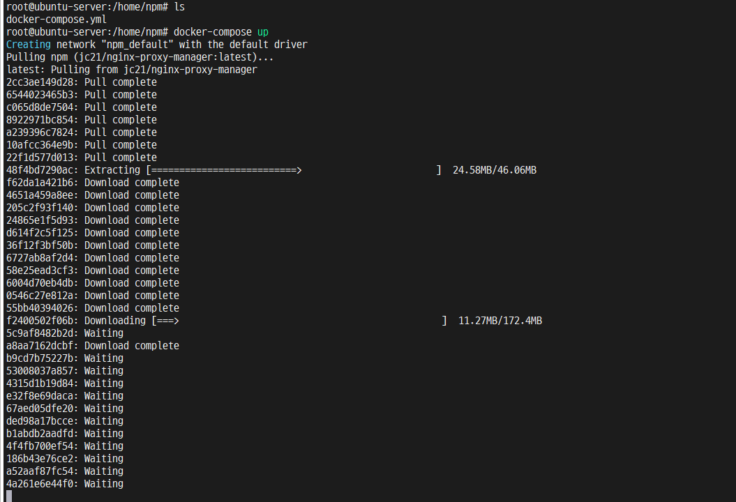 nginx 와 nginx proxy manager를 다운받고 설치중이다.