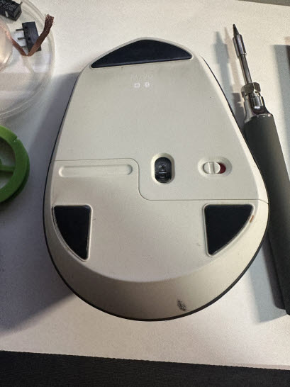 분해를하려면 맨위 마우스 서퍼를 뗴어내야 숨어있는 나사를 풀 수있다. 재활용을 해야하니 조심히 뗴어낸다.