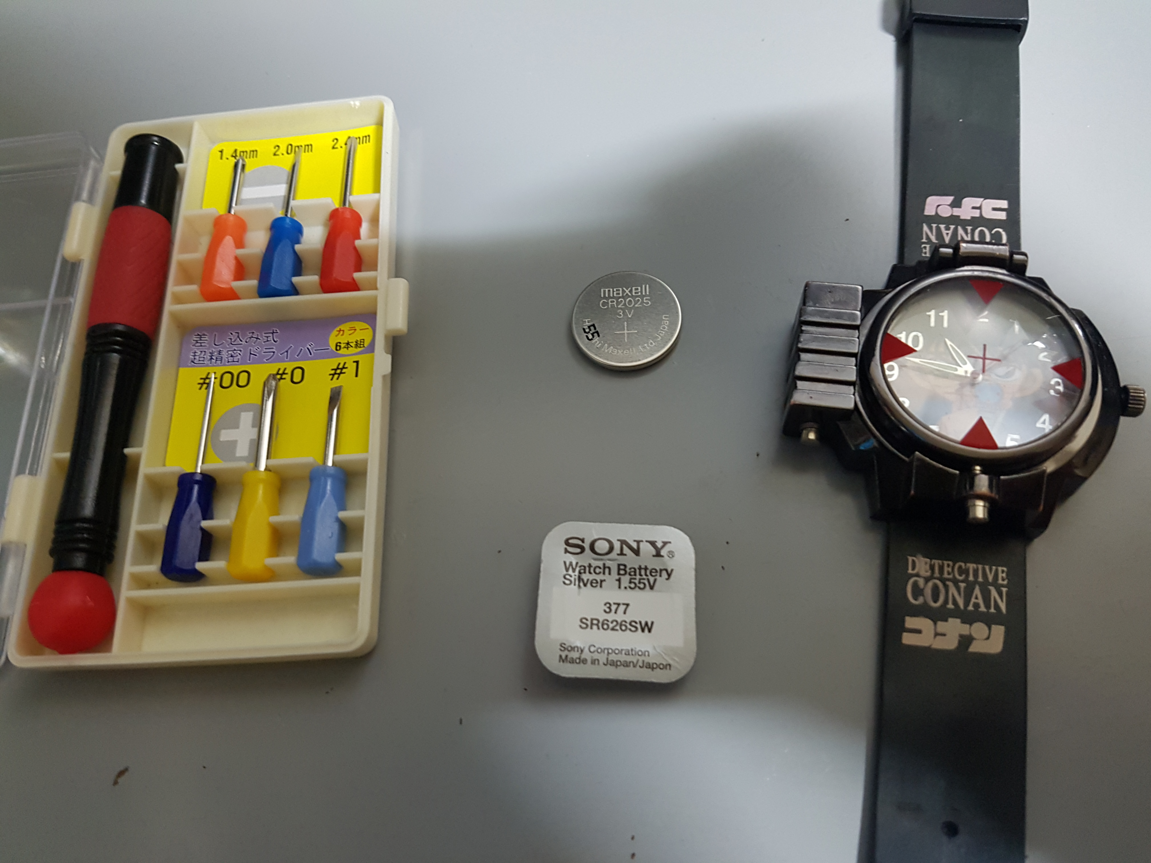 명탐정코난시계는 레이저부분의 배터리, 시계본체의 배터리 총2개가 필요하다.