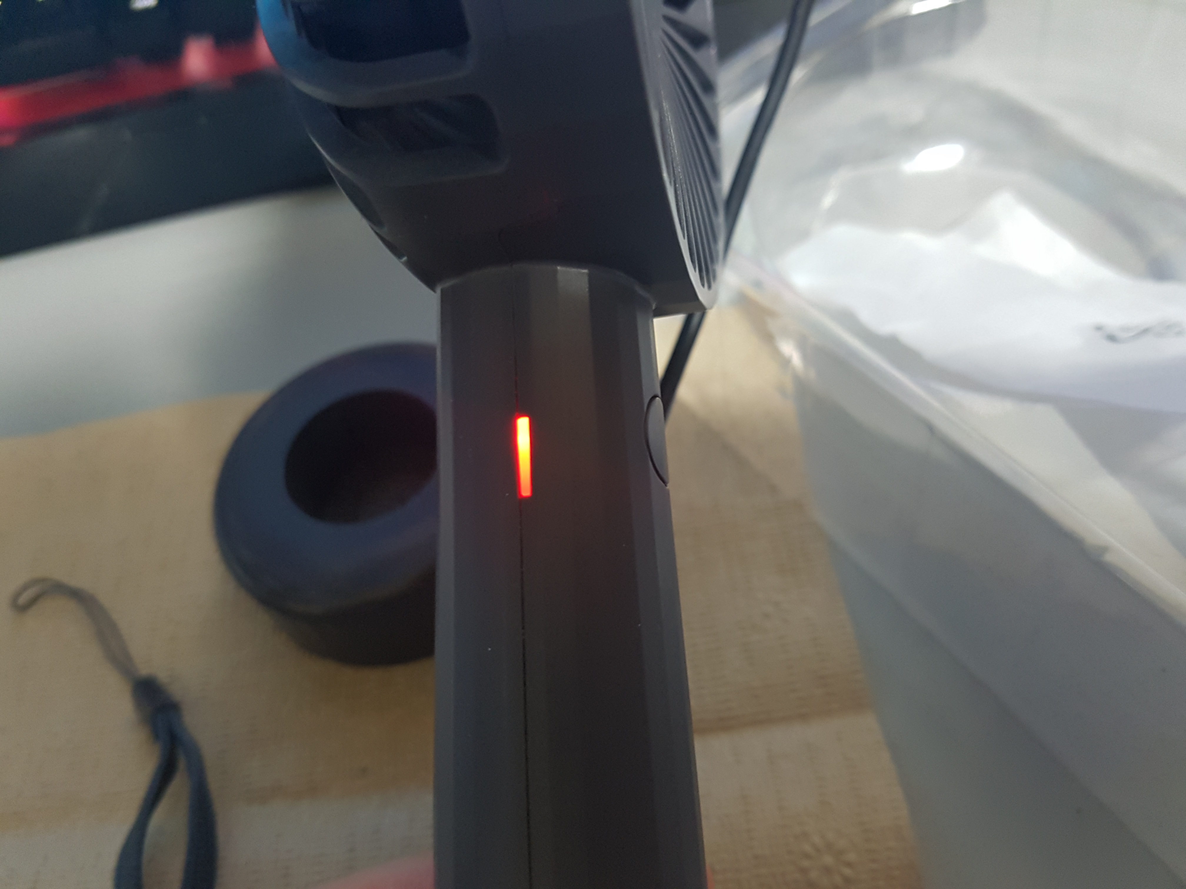 충전 중일 때는 RED LED가 깜빡거리며 충전이 완료되면 깜빡거림이 멈춤.