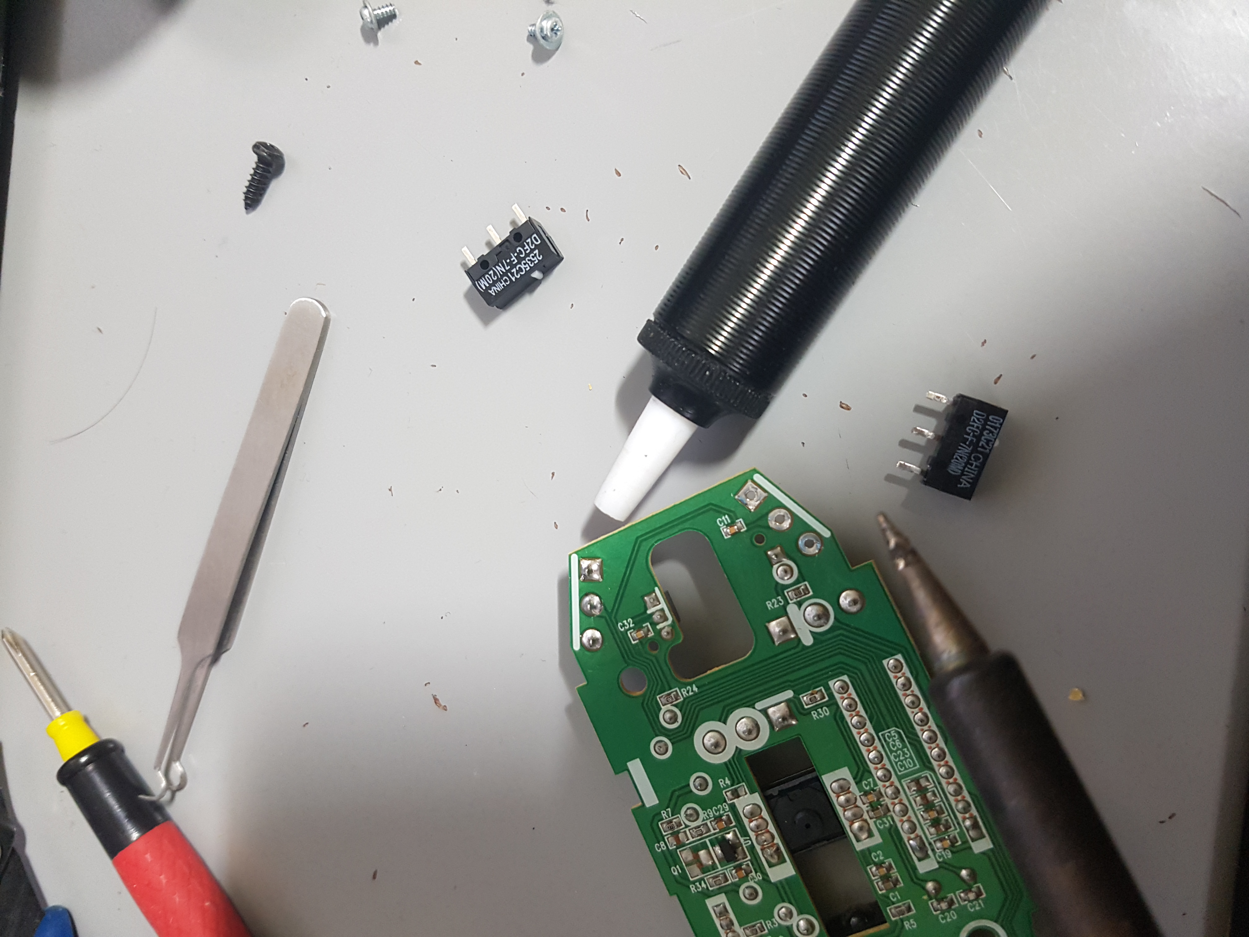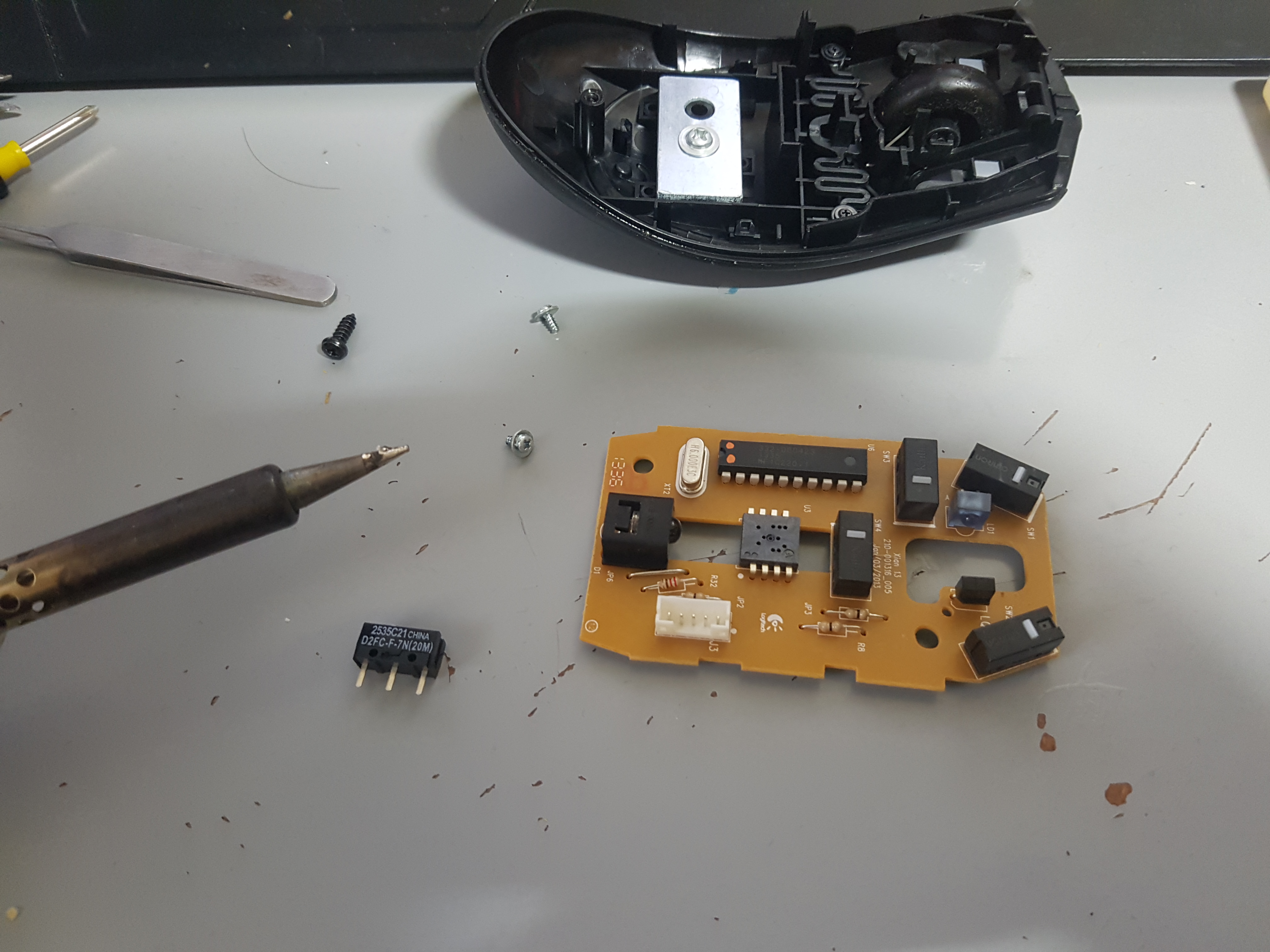 단종된 로지텍 G1마우스도 스위치랑 기판이 동일하기 때문에 위와같이 수리하면 가능하다.