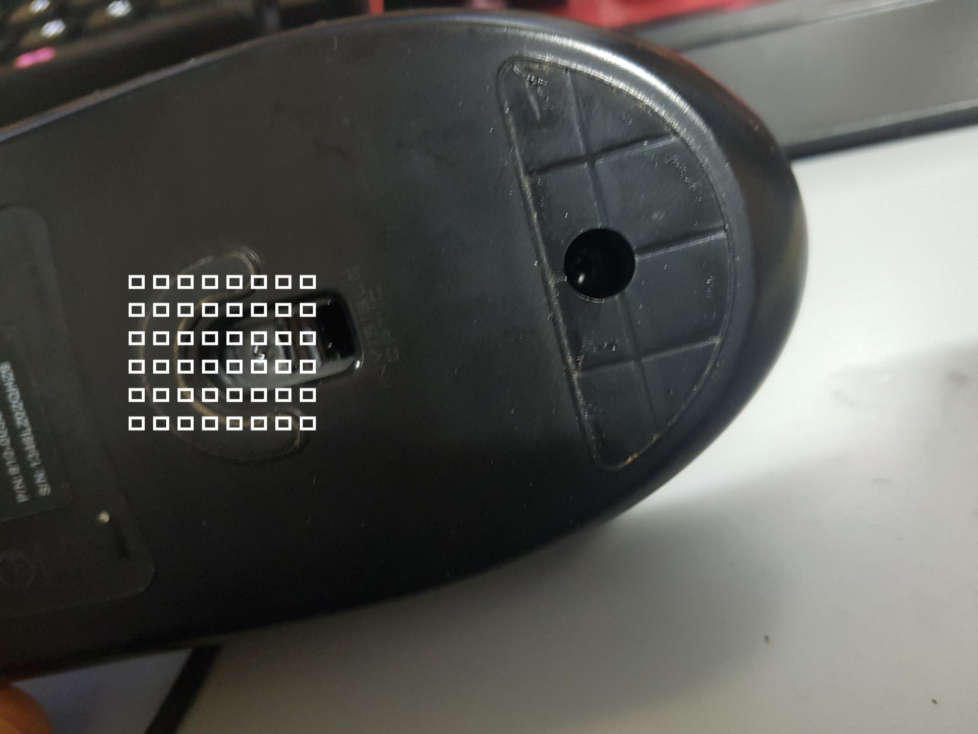 마우스 피트 스티커를 제거후 나사를 푼다. 피트 스티커는 재활용을 해야하기 때문에 깨끗하게 뗴어낸다.