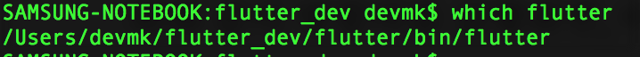 위와 같이 명령어를 실행하면, 아래와 같이 flutter 명령어의 경로가 나타난다.