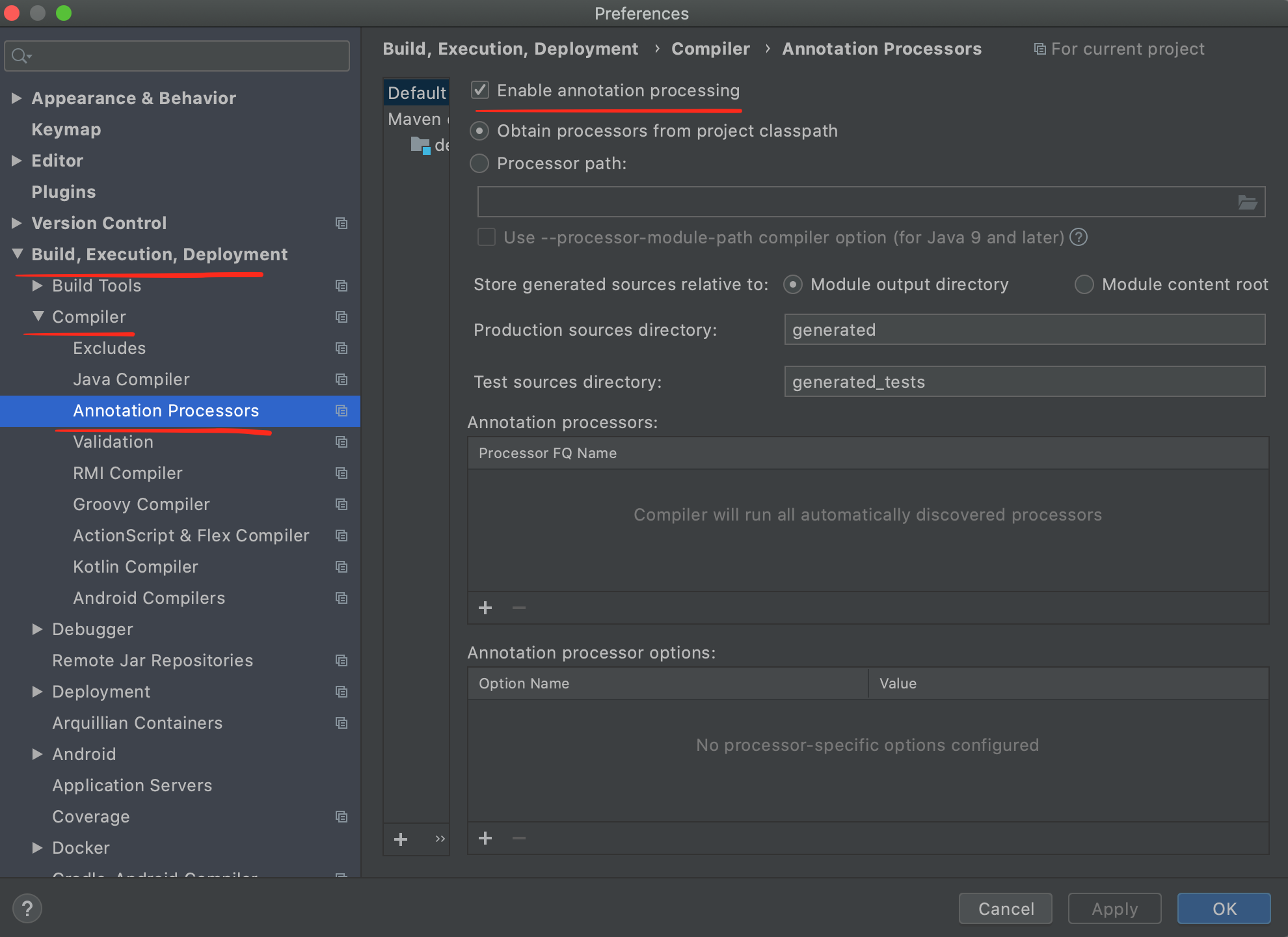 Preferences > Build, Execution, Deployment > Compiler > Annotation Processors >
