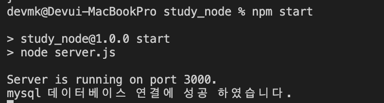 다시 서버를 구동하면 아래의 메세지가 출력된다면 정상이다.