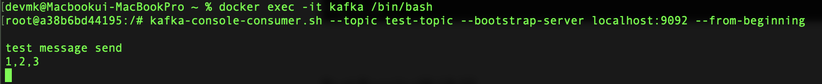 $ kafka-console-consumer.sh --topic test-topic --bootstrap-server localhost:9092 --from-beginning