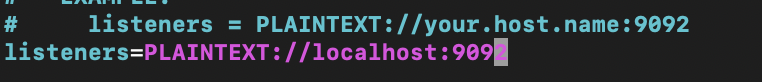 listeners=PLAINTEXT://localhost:9092
