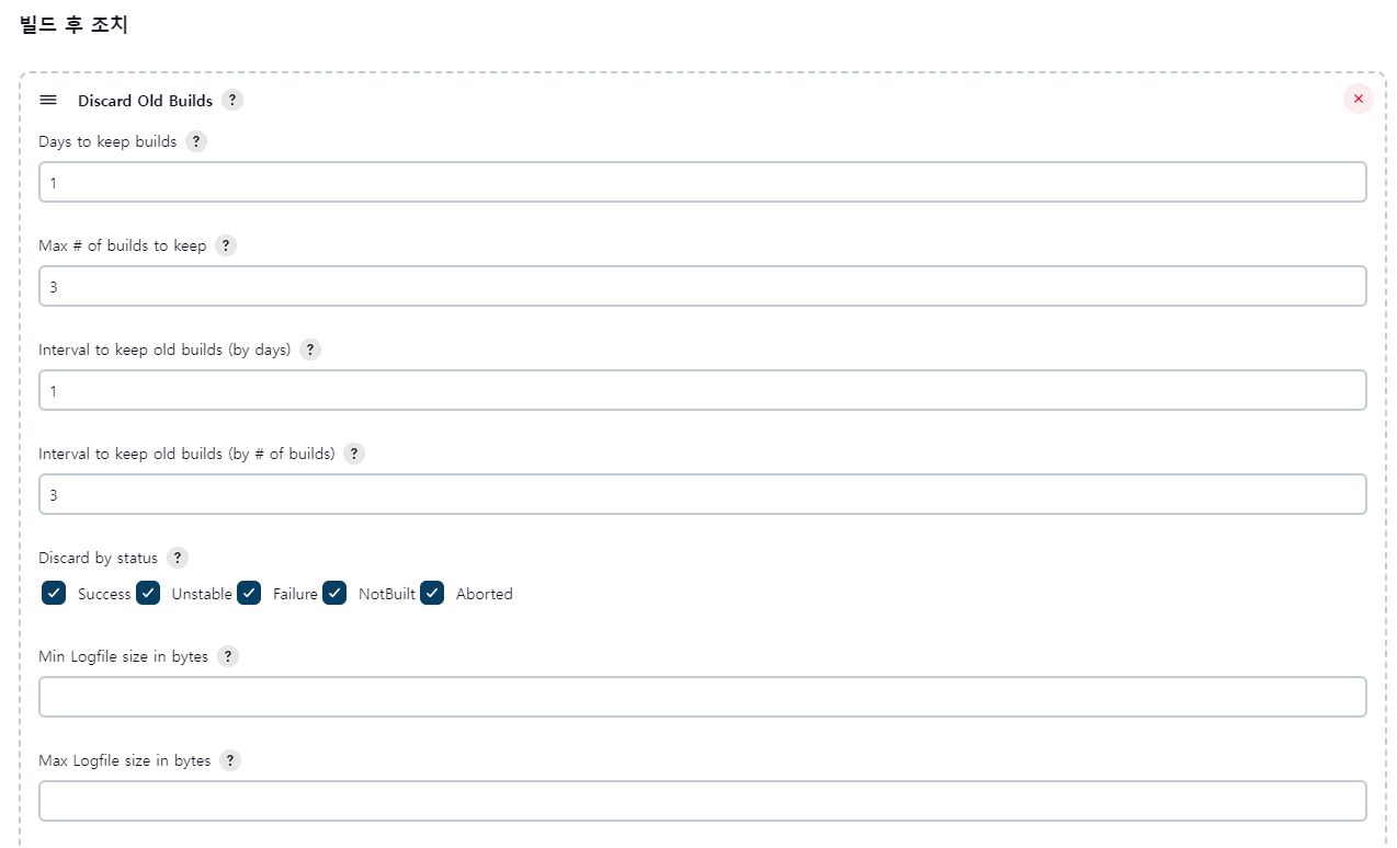 2. 각 프로젝트 설정 > 빌드후 조치 > Discard Old builds